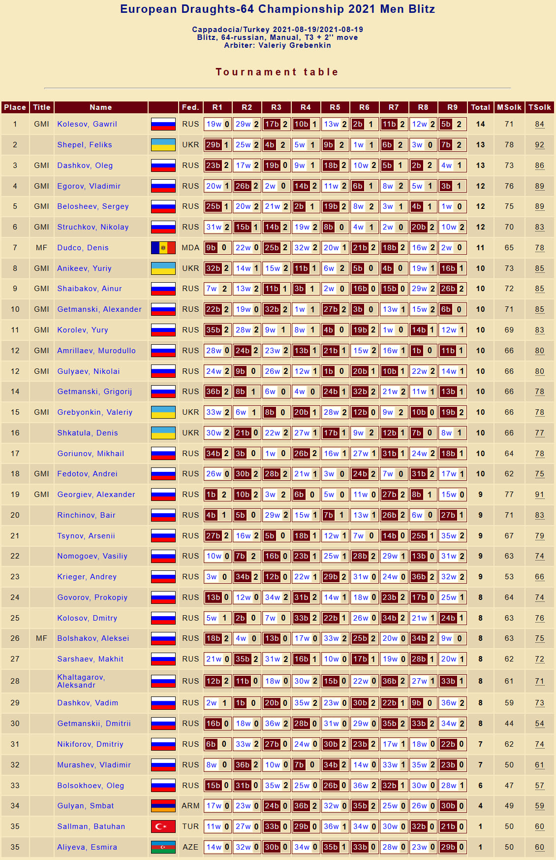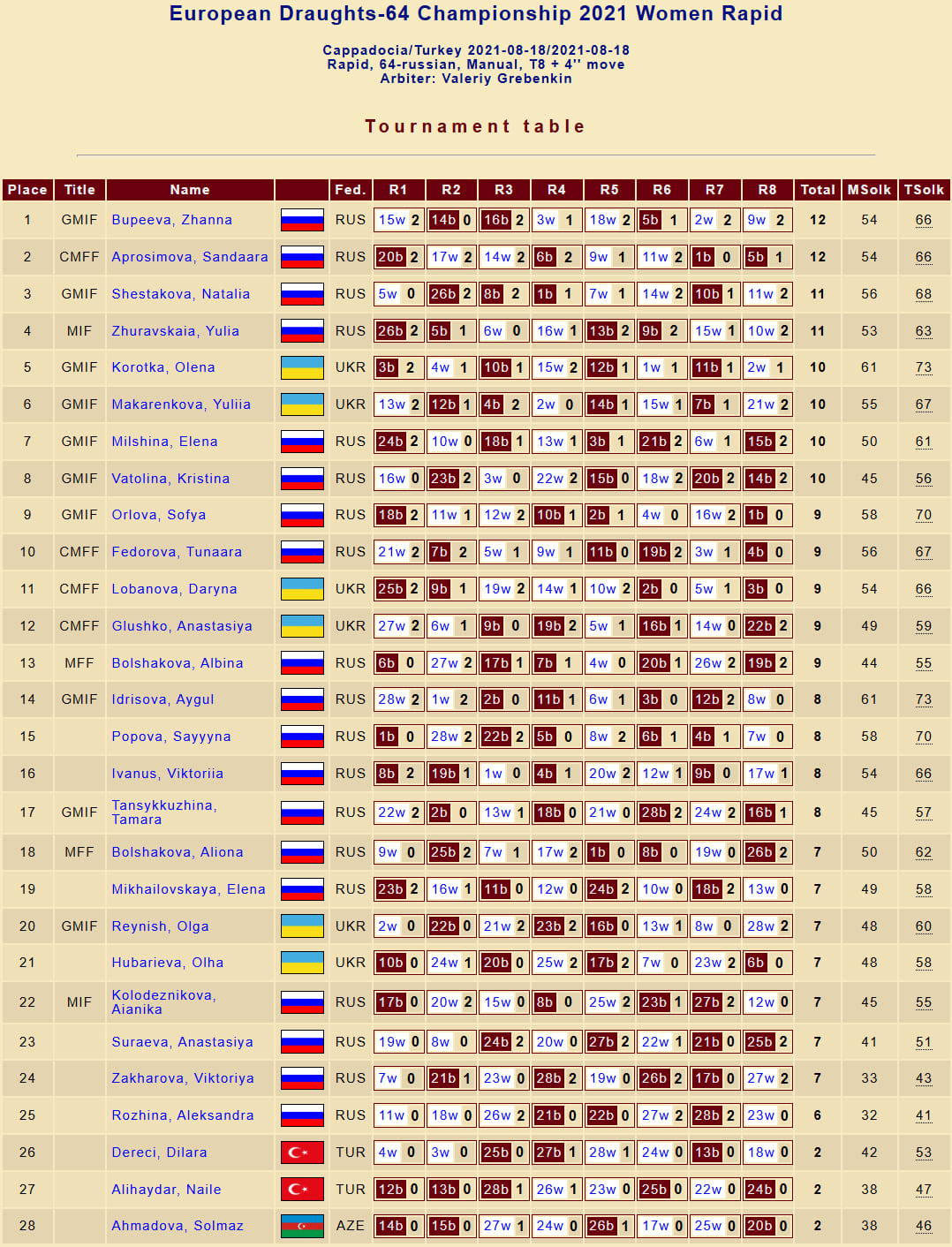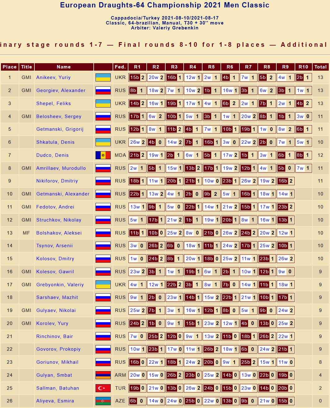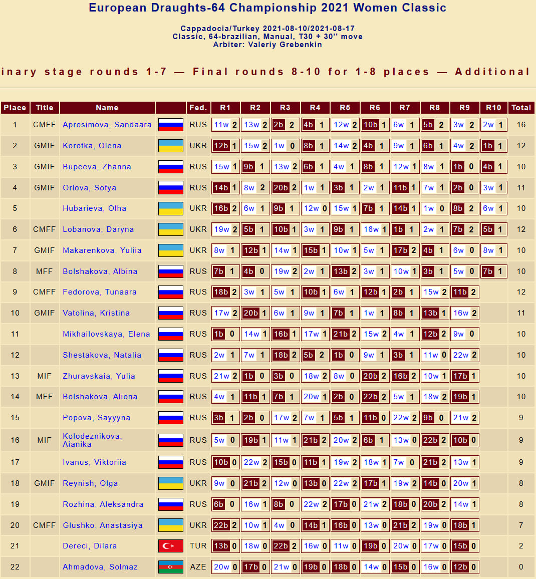 У місті Каппадокія (Туреччина) з 14 по 19 серпня відбувся Чемпіонат Європи з шашок-64 (класична версія) серед чоловіків та жінок.