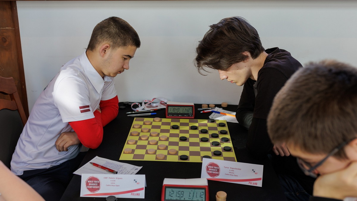 У змаганнях серед юніорів силу українських шашок демонструють майстер спорту Данило Соколов (група B19) з Харкова та кандидатка у майстри спорту Катерина Мойсей (G19) з Іршави (Закарпатська область). В турнірі серед юнаків Данило набрав 7 очок з 8 можливих і закономірно випереджає найближчих переслідувачів на одне очко.