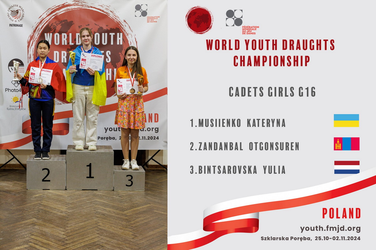 Дуже потужно виступила кандидатка у майстри спорту Катерина Мусієнко, яка стала абсолютною чемпіонкою світу серед «кадеток», тобто виграла «класику», «рапід» та «бліц»). Вдалий виступ спортсменки у групі G16 дозволяє їй розраховувати на підвищення в класі. Норматив Master FMJD, який виконала К.Мусієнко у класичній грі, прирівнюється згідно Кваліфікаційних норм та вимог Єдиної спортивної класифікації країни з неолімпійських видів спорту до виконання звання «Майстер спорту України» з шашок.