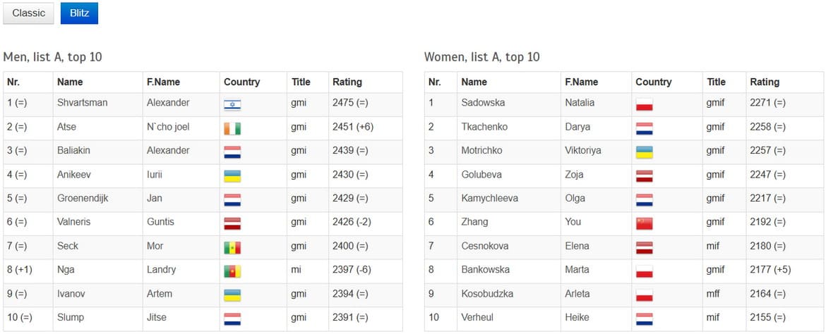 Згідно рейтингового листа Всесвітньої федерації шашок станом на 1 квітня 2026 року, Вікторія посідає 2-е місце в ТОП-10 найтитулованіших спортсменів світу з класичних шашок та 3-є місце у бліці. Також у двох РЛ і франківець Артем Іванов, який посідає відповідно 10-ту та 9-ту позиції. Харків’янин Юрій Анікєєв – топ-4 серед світових бліцерів.