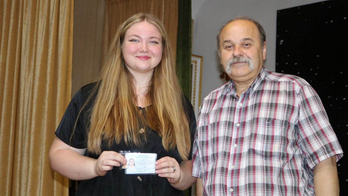 Віра Попруга отримує свідоцтво гросмейстера від головного судді молодіжного чемпіонату України Костянтина Балтажи