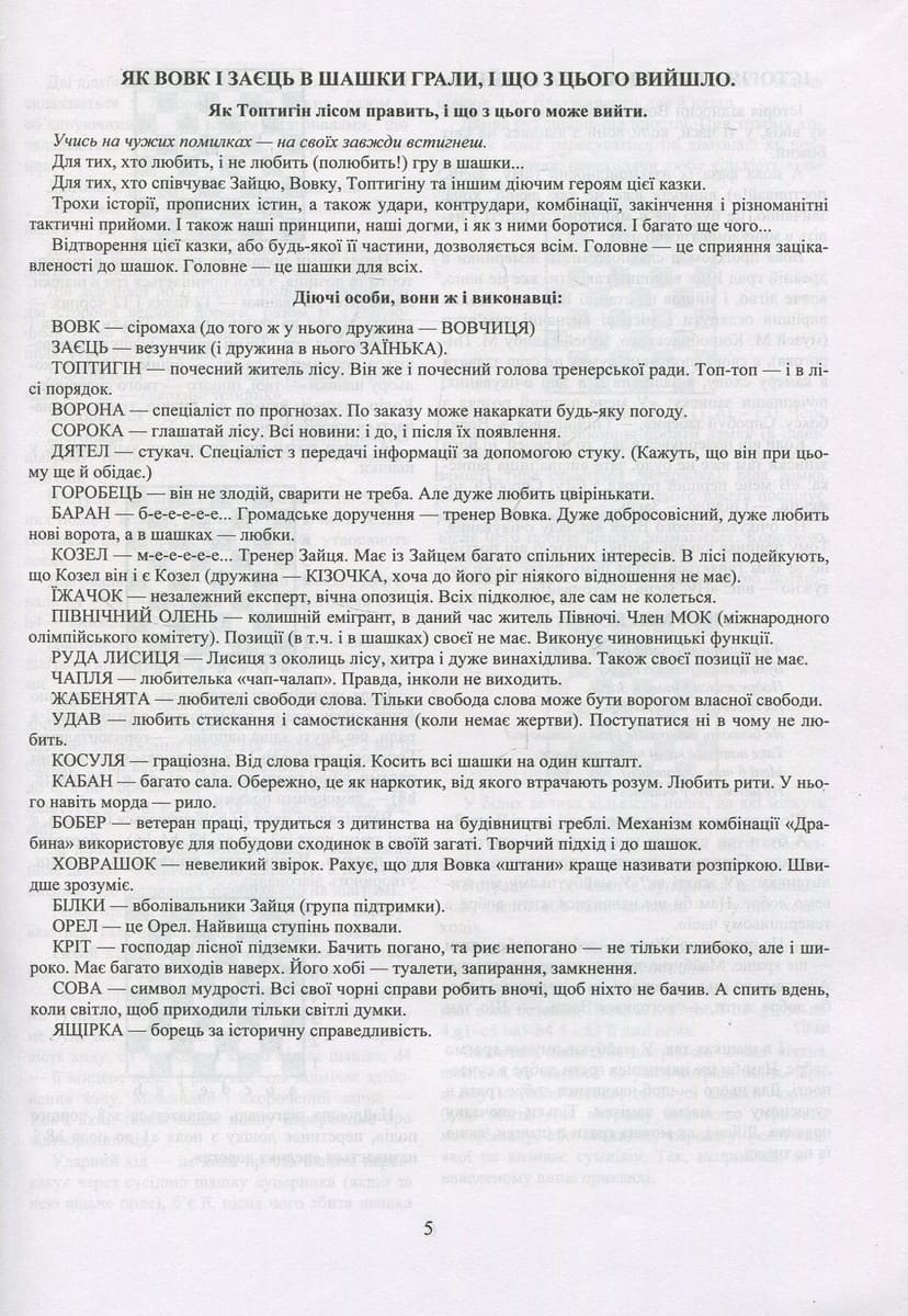 Шашки є одним із засобів розвитку в дитини багатьох важливих якостей: цілеспрямованості, концентрації, відповідальності за свої вчинки, інтуїції і. насамперед, пам’яті та логічного мислення. Казкова форма викладу навчального матеріалу є однією зі спроб залучення дітей до цієї древньої гри, яку грали ще єгипетські фараони. Посібник відповідає чинним програмам підготовки в спортивних установах і позашкільних закладах.