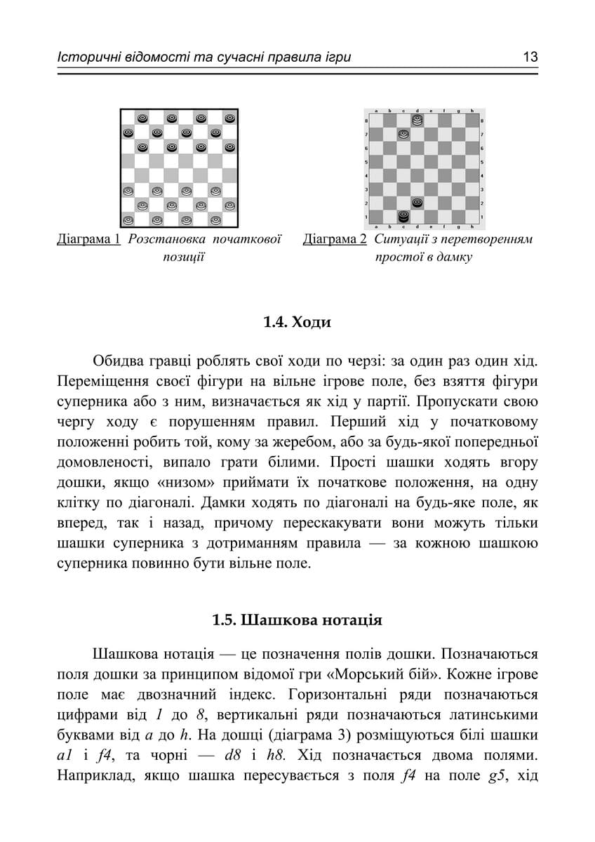Посібник призначений для студентів вищих навчальних закладів І–ІVрівнів акредитації, а також може бути використаний при підготовці спортсменів-розрядників шашкових відділень дитячо-юнацьких спортивних шкіл.