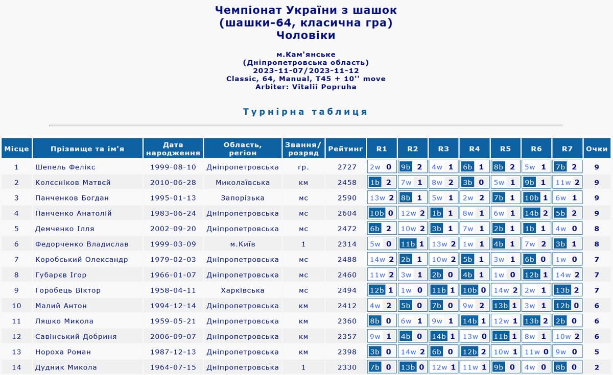 Норматив спортсмен ГО «ФШМК» (м.Київ) виконав на чемпіонаті України з шашок-64 серед чоловіків, що відбувся у Кам'янському (6 місце в турнірі з класичної гри). Тренує спортсмена – ФЕДОРЧЕНКО Анатолій Віталійович.