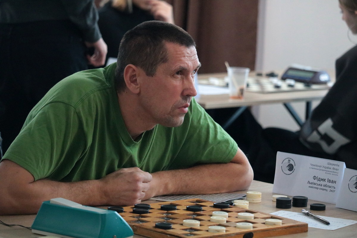 До останнього шанси на призову трійку зберігав також Іван Фідик. Майстер спорту зі Львова є тотально незрячим шашкістом, тому кожного туру грав наосліп на спеціальній дошці. Тим не менш, це не завадило досвідченому й титулованому майстру продемонструвати гарну та якісну гру. Вигравши 4-ри зустрічі у сильних опонентів, він розташувався в турнірній таблиці на 4-й позиції.