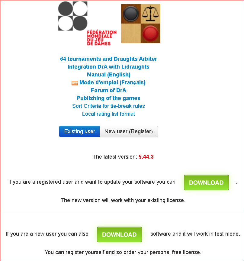 З оригінальним продуктом від всесвітньої міжнародної федерації шашок FMJD, що призначений для проведення офіційних та неофіційних змагань будь-якого рівня, а саме з використанням програми жеребкування Draughts Arbiter Pro, можна ознайомитися на сторінці програми. У списку представленої документації по програмі (англійською) Draughts Arbiter Pro, є посібник, призначений для користування нею.