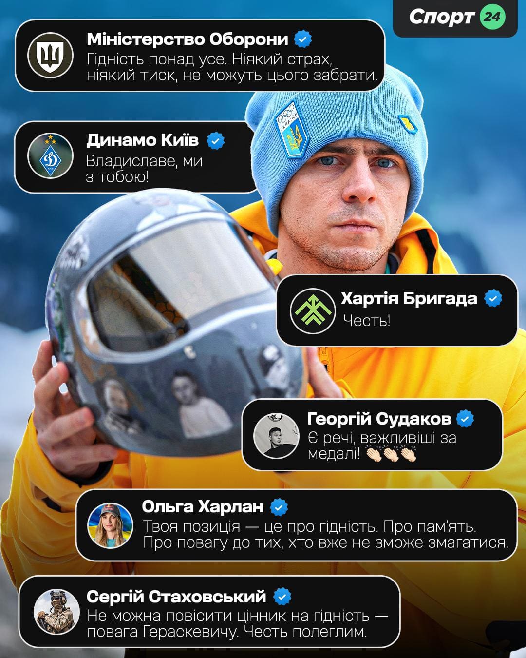 Нагадаємо, у четвер, 12 лютого 2026 року, українського скелетоніста Владислава Гераскевича дискваліфікували перед першим заїздом у фіналі Олімпійських ігор-2026. Під час розмови з очільницею МОК Кірсті Ковентрі намагалася переконати українського скелетоніста змінити позицію щодо «шолома пам'яті», на що Гераскевич відповів відмовою.