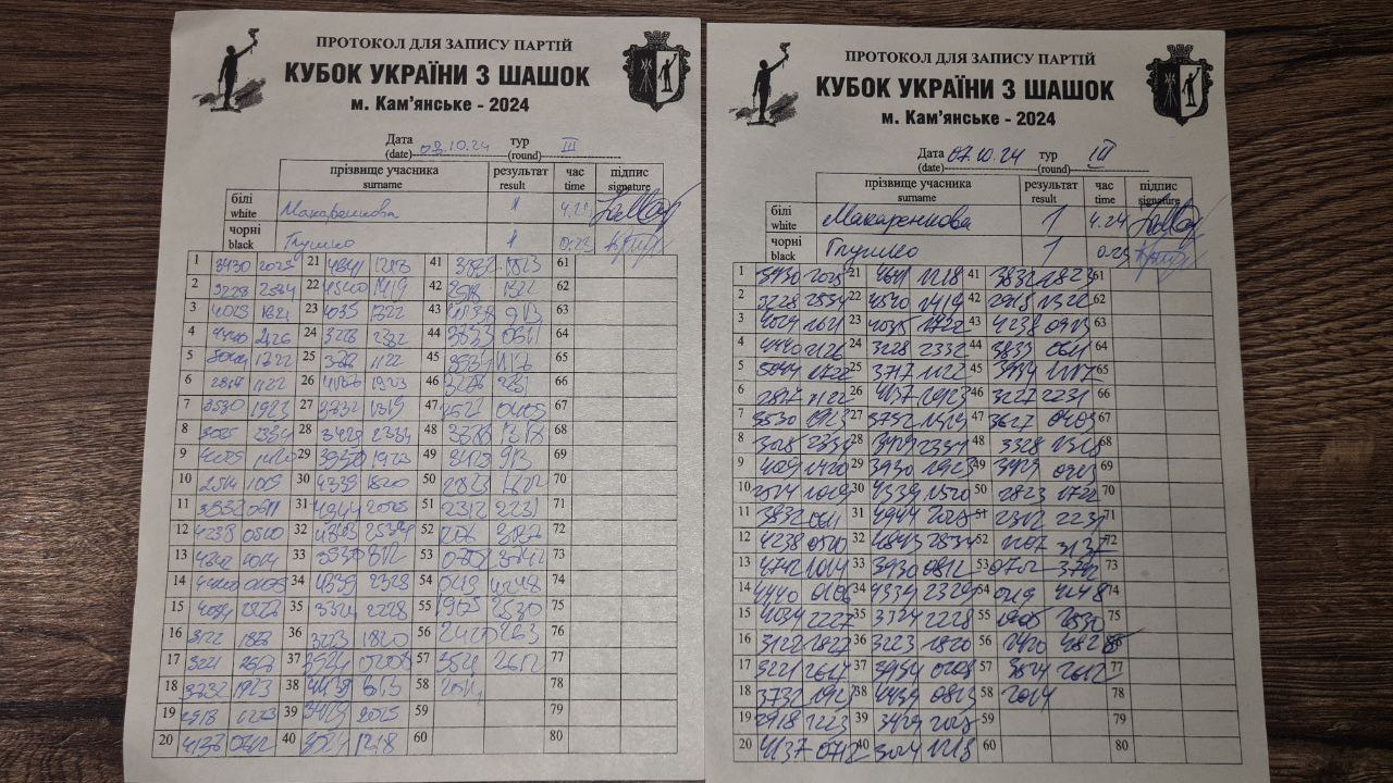 1. Макаренкова Юлія - Глушко Анастасія - 1:1